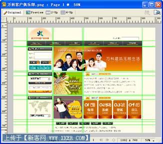 在Fireworks或者是PhotoShop中设计好的网页效果图,需要导入到Dreamweaver中进行排版布局。在导入到Dreamweaver 之前,可以使用Fireworks对效果图进行切片和优化,然后才能够把优化好的切片输出到Dreamweaver的站点中进行布局。切片的目的是为了获得图像素材,也就是说能够通过写XHTML语言脚本实现效果的部分,就不需要切片,而必须用图像的地方,则一定要切片。下面通过一个实例来给大家介绍一下 Fireworks CS3的切片和优化功能,具体操作步骤如下: